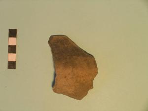 Frammento di scodella carenata, orlo arrotondato, breve labbro esoverso, parete verticale concava, carena arrotondata.