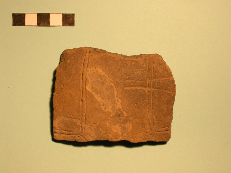 Frammento di parete di vaso di grandi dimensioni; presenta una decorazione incisa a riquadri.