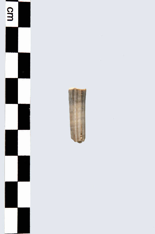Dentalium exangolum marino utilizzato come vago di collana, con foro naturale allargato.