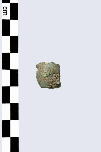 Lama in bronzo con costolatura spessa assimetrica. Forse pertinente a falcetto metallico.