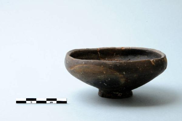 Ciotola con orlo rientrante, arrotondato e sagomato; attacco orlo-parete carenato; vasca troncoconica con pareti bombate; piede ad anello sagomato. Variante 1B.
