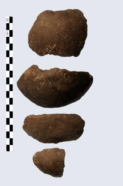 Quattro frammenti di parete non contigui di dimensioni variabili, pertinenti ad un'olla in ceramica comune di tipologia non ben definibile a causa della loro esiguità e della mancanza di porzioni significative di orlo o fondo.