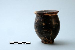 Olletta a corpo globulare (variante a) con orlo ricurvo espanso esoverso. Viste le caratteristiche tecniche (qualità del corpo ceramico e della vernice - e la tipologia di riferimento, il manufatto può essere attribuito alla produzione adriese.