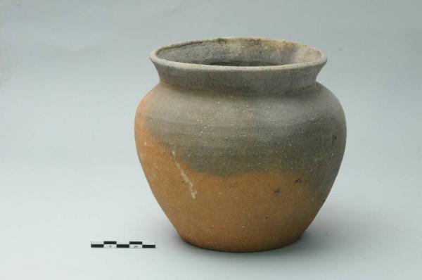 Olla di forma ovoide, utilizzata come ossuario, alto orlo svasato e base piana.
