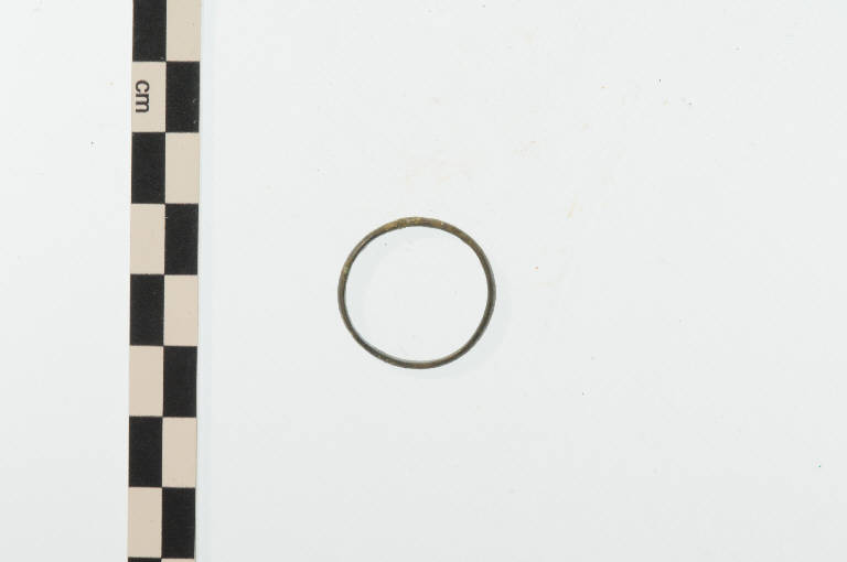 Anello digitale costituito da un filo in bronzo a sezione quadrangolare chiuso.