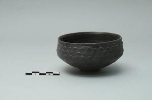 Coppetta a pareti sottili carenata, orlo dritto sottolineato da una scanalatura, decorazione à la barbotine, piede a disco.
