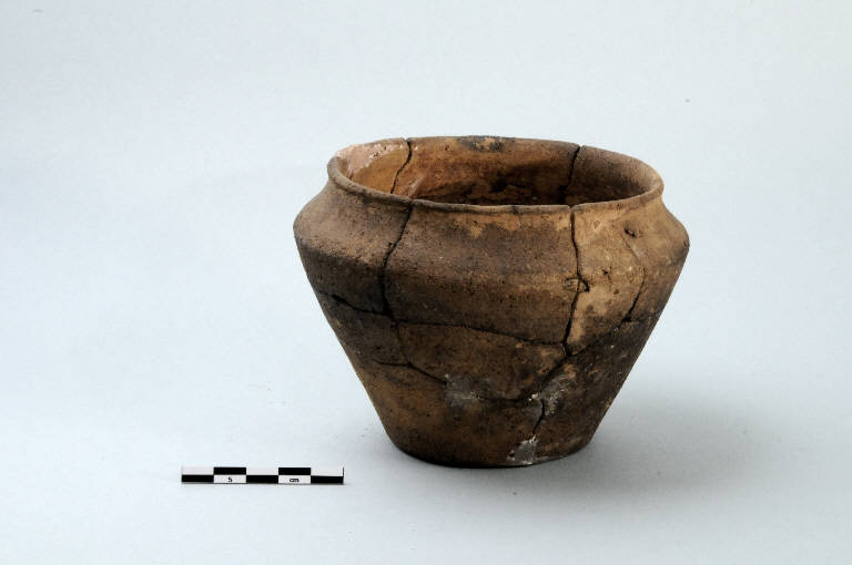 Olletta biconica con carenatura alta, orlo arrotondato verso l'esterno, fondo piano.