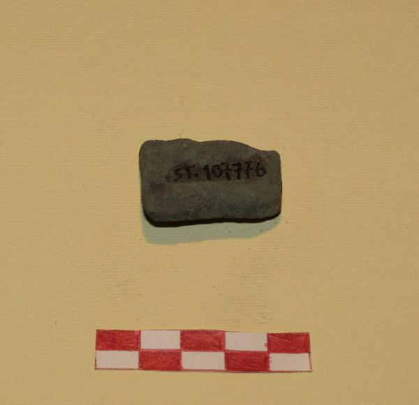 Barretta di forma sub-rettangolare piana, in bronzo, con i lati arrotondati, probabile resto di fusione.