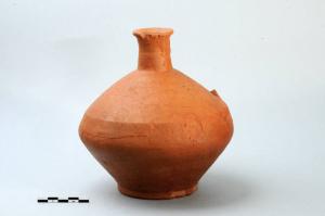 Olpe in ceramica comune a fondo piano e ansa tricostolata