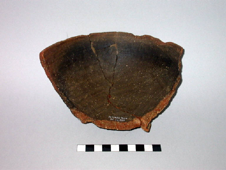 Ciotola - coperchio in ceramica comune, presenta orlo indistinto, corpo troncoconico e presa ad anello.