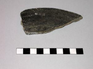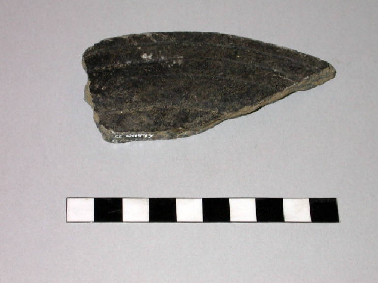 Frammento di fondo piano pertinente a un vaso cilindrico in pietra ollare