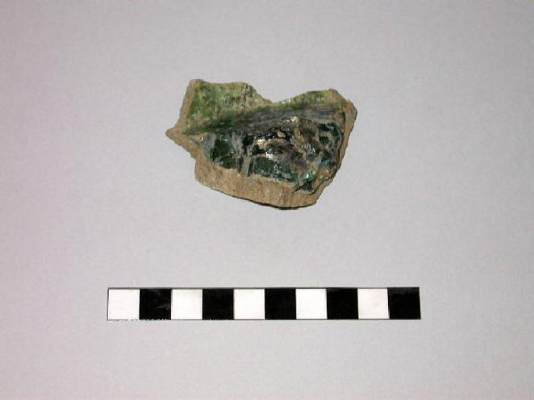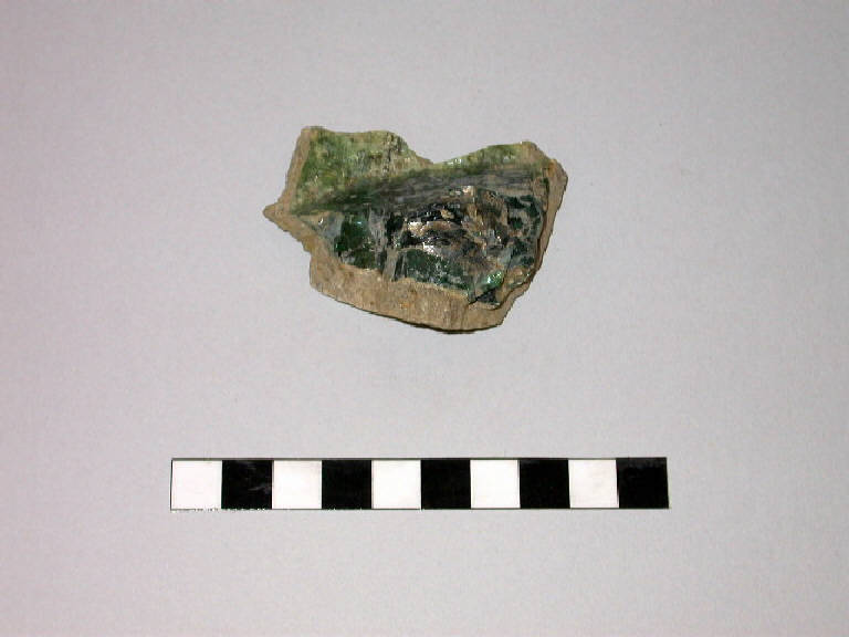 Frammento di crogiolo troncoconico in pietra ollare con all'interno residui di vetro fuso