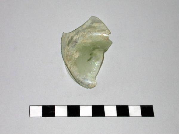 Frammento di fondo di bottiglia a corpo cilindrico in vetro verdino