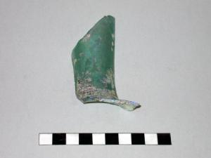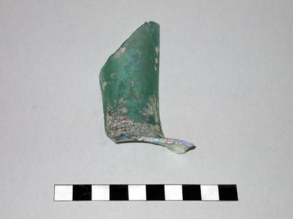 Frammento di bottiglia in vetro verde - azzurro a stretto collo cilindrico