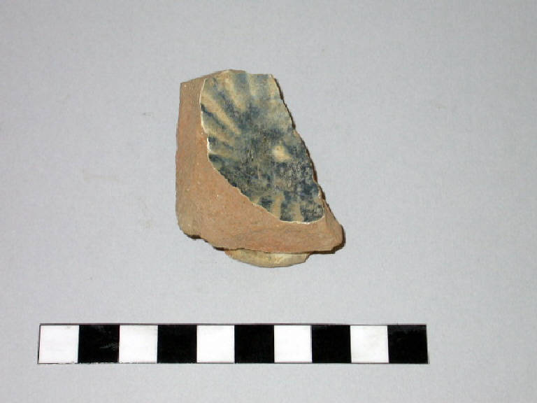 Frammento di ciotola in ceramica ingobbiata, dipinta ed invetriata con piede a disco leggermente concavo