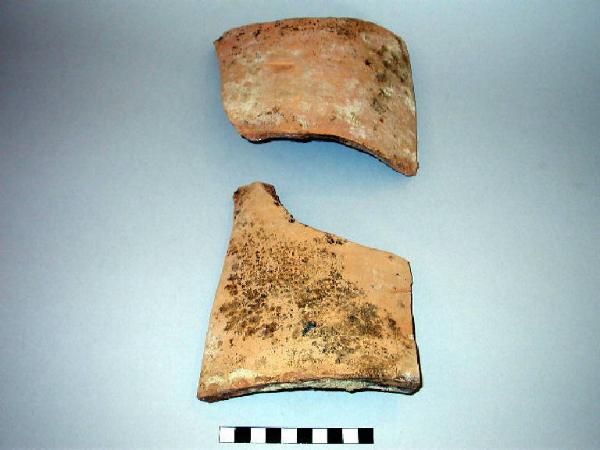 Due frammenti di tubulo per scarico fognario in terracotta invetriata
