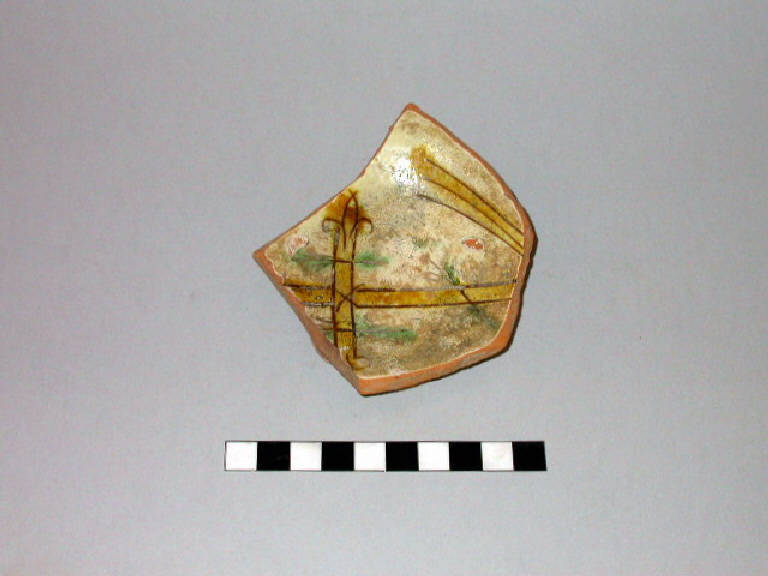 Frammento di ciotola in ceramica ingobbiata, graffita, dipinta e verniciata