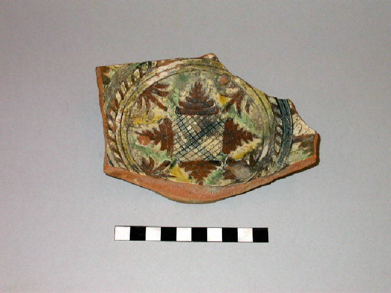 Frammento di piatto in ceramica ingobbiata e graffita dipinta