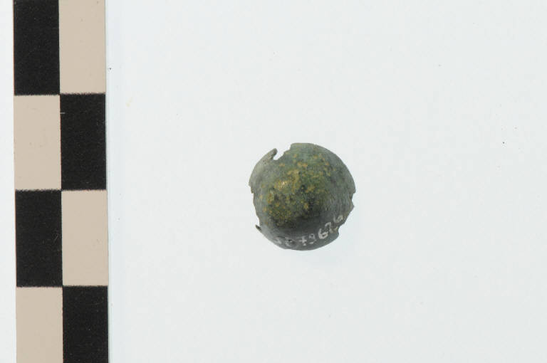 Campanellino in bronzo di forma troncoconica, mancante del battaglio (probabilmente in ferro).