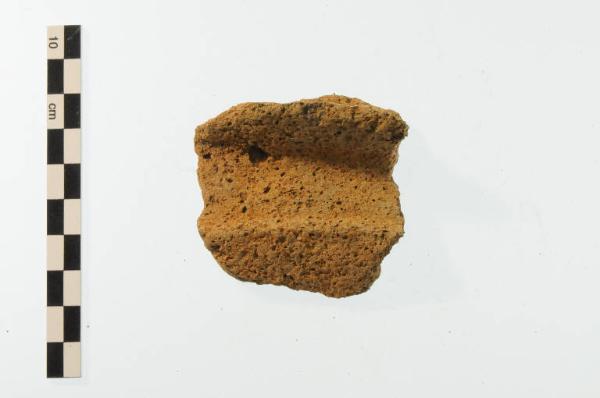 Ciotola troncoconica con fondo piano, parete svasata e presa a linguetta.