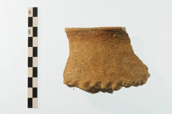 Olla a corpo ovoide e breve orlo a sezione triangolare.
