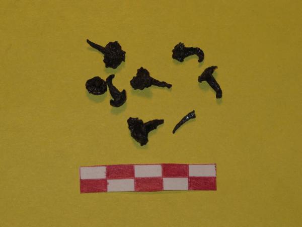 Sei chiodini in ferro per calzatura.