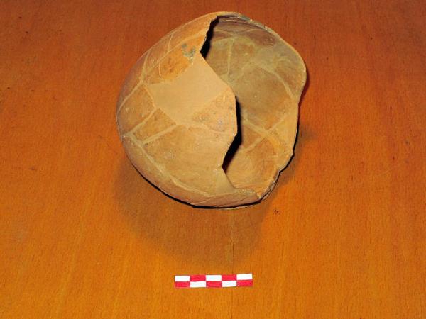 Olpe in ceramica comune da mensa. Orlo leggermente stroflesso, collo stretto cilindrico, corpo piriforme a bassa carenatura, fondo ad anello. Presenta un'ansa a nastro verticale tricostolata impostata sotto l'orlo e sul corpo. Diam. orlo cm 3,5; alt. cm 17,3. Parzialmente ricomposta e integrata dal restauro. Datazione: prima metà I secolo d.C.Provenienza: Acquafredda, loc. Borgo dei Lupi, necropoli romana, tomba 11.