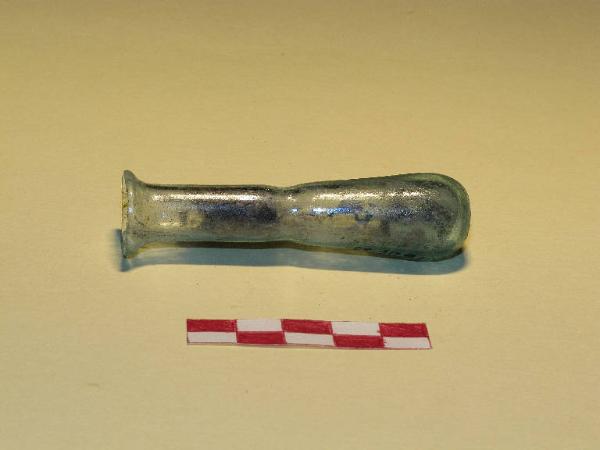 Balsamario di vetro di tipo Isings 8/27. Verde-azzurro, trasparente. Restaurato.