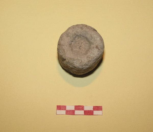 Peso cilindrico in piombo, incavato sulle due basi di diam. cm 0.26 e cm 0.24.