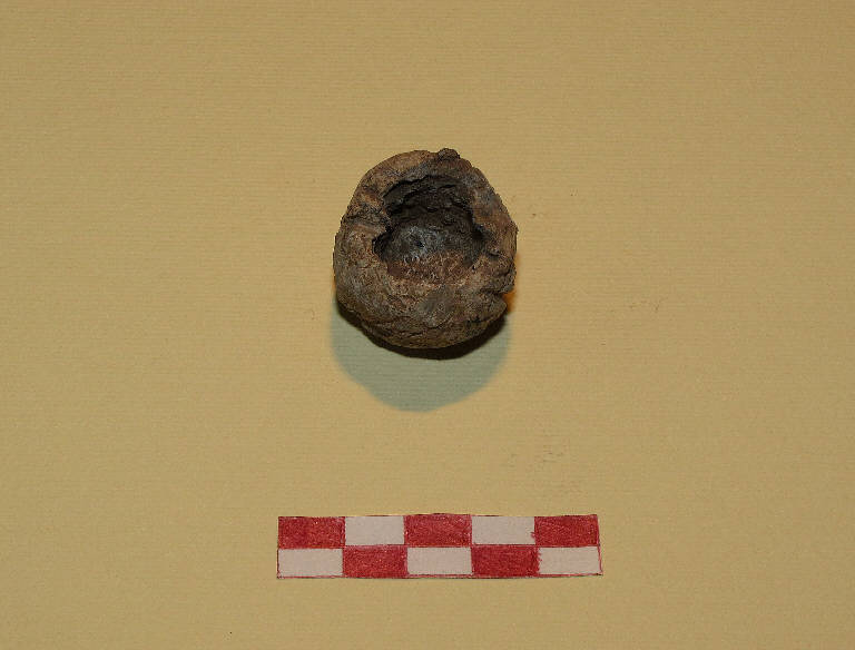 Peso in piombo sferoidale, con grosso incavo all'interno.