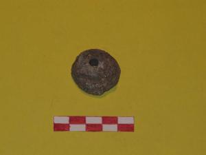 Peso in piombo troncoconico con foro circolare passante nel centro.