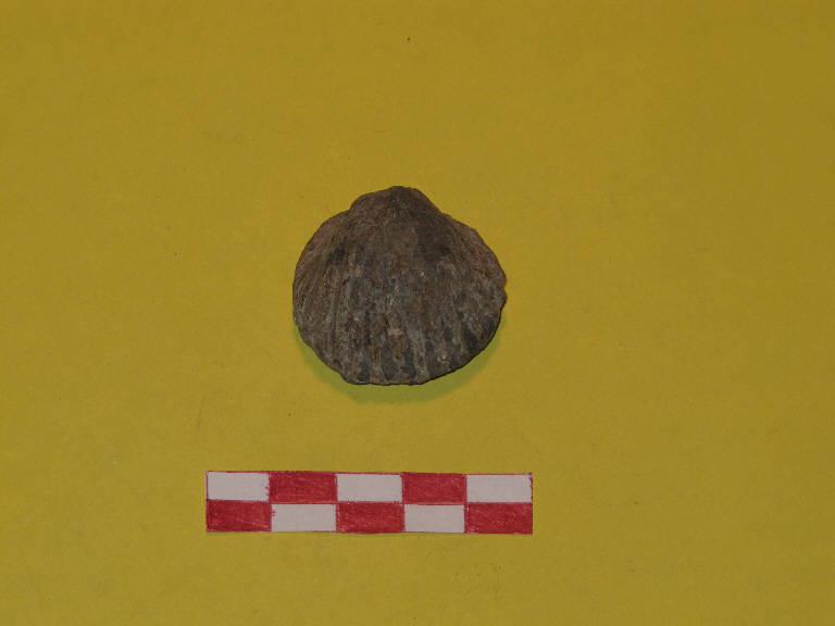 Peso in piombo ottenuto usando come stampo una valva di cardium.