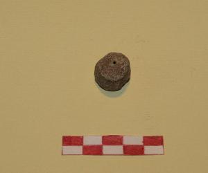 Peso in piombo di forma sub cilindrica, con foro passante svasato. Una base è convessa.