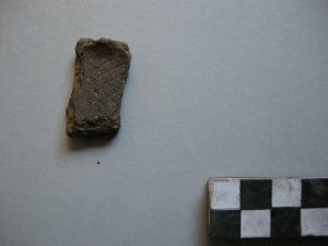 Frammento di spalla prodotto in ceramica color bruno con decorazione a rete.
