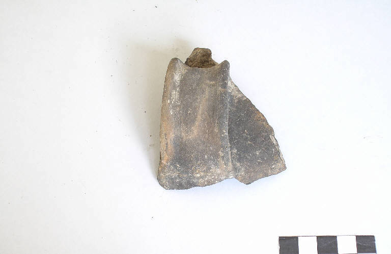 Frammento di vaso con ansa, prodotto con cermica d'impasto fine color grigio.