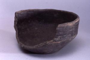 Capeduncola o ciotola a corpo carenato, prodotta con ceramica d'impasto finemente depurata con minuti inclusi micacei, color grigio scuro, e superficie lisciata, avente orlo di forma arrotondata, parete distinta rettilinea, vasca tronco-conica e fondo piano.