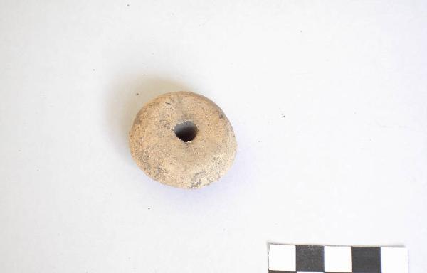 Fuseruola prodotta in ceramica d'impasto mediamente depurato, color grigio, con inclusi litici e micacei, avente forma a imbuto.