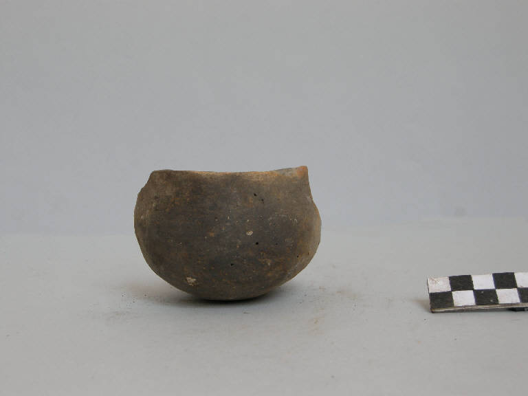 Ciotola con corpo a calotta, prodotta con ceramica d'impasto finemente depurata con minuti inclusi micacei, color grigio, avente orlo arrotondato, assottigliato.