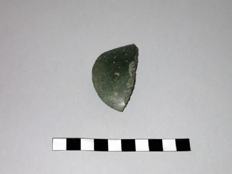 Frammento di ascia in pietra verde levigata. Si conserva solo parte del taglio.
