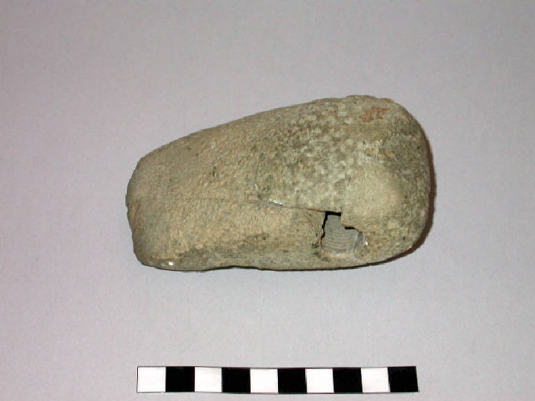 Ascia-martello in pietra levigata. Nel foro centrale era alloggiato il manico di legno.