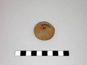 Fusaiola di terracotta di forma troncoconica, con la base concava.