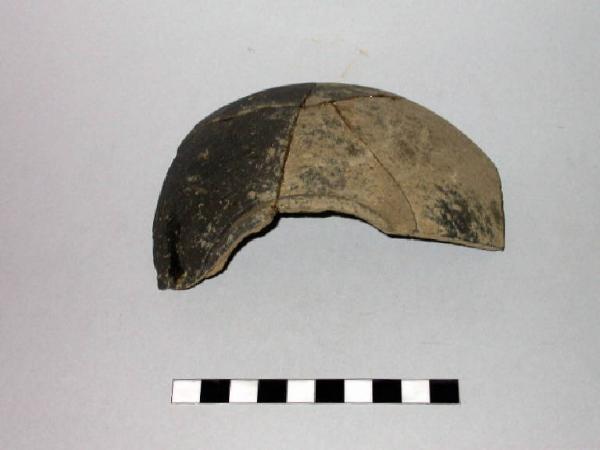 Frammenti pertienti a ciotola in impasto di tipo buccheroide con orlo ingrossato e legermente rientrante, arrotondato e vasca emisferica.
