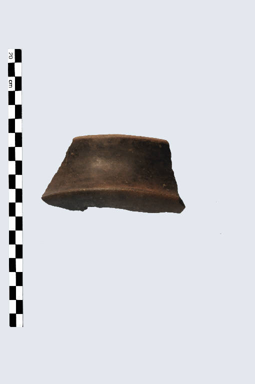 Scodella carenata a parete rastremata, con orlo arrotondato e profilo concavo, prodotta in ceramica d'impasto fine, con inclusi litici e micacei, color bruno rossiccia, con superficie lisciate e levigate.