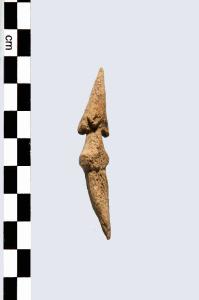 Punta di freccia arpionata con 3 alette aperte, di tipo I, a sezione pseudo-circolare, con collarino ben definito tra punta e peduncolo. Il manufatto si trova in corso di lavorazione.