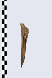 Punteruolo caratterizzato da una estremità prossimale, costituita dall'epifisi, in parte mancante, che fungeva probabilmente da impugnatura, e da una estremità appuntita e levigata.