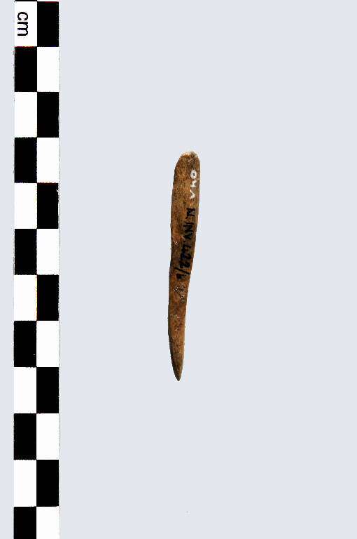 Punta doppia, fusiforme, a sezione concavo-convessa, con una estremità leggermente arrotondata.