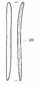 Su scheggia. Estremità prossimale arrotondata. Sezione concavo-convessa.