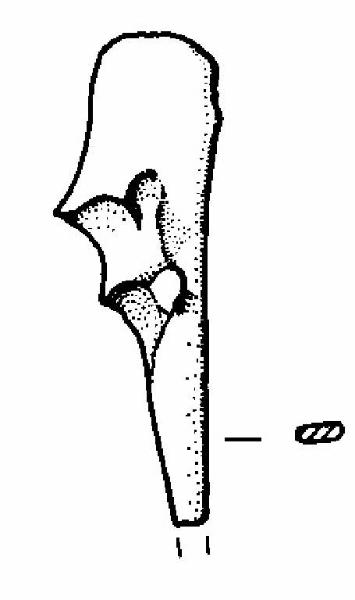 Dimensioni medie. Ottenuto da osso lungo di mammifero. Impugnatura rappresentata dall'epifisi.