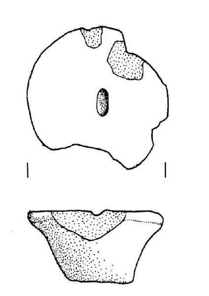 In corso di lavorazione. Profilo trapezoidale. La base al centro presenta una tacca di forma ovale.