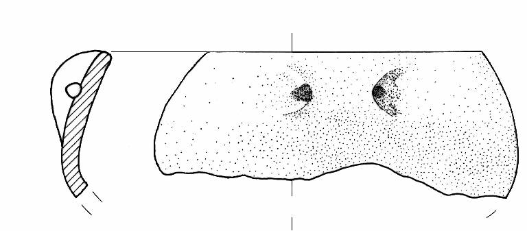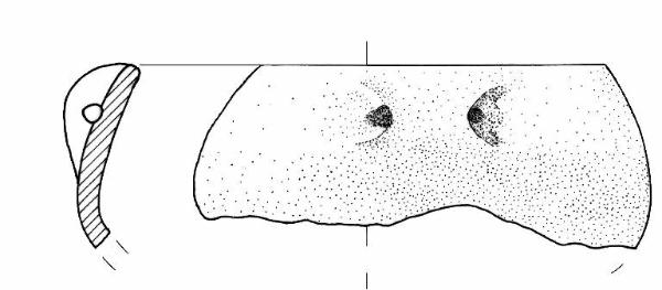 Corpo biconico, orlo piatto obliquo verso l'interno. Ansa canaliculata impostata all'orlo. Colore: marrone molto chiaro/grigio.